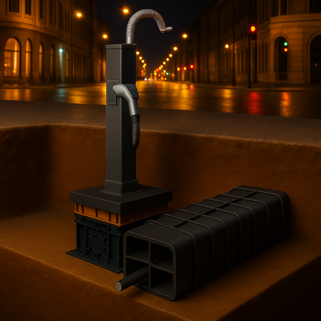 Når du velger modulære løsninger fra Nordic Tube, kan du også designe våre Crosscube kummer som fundamenter til ladeløsninger . Med kun 4 forskjellige moduler, kan du bygge ønsket størrelse og dybde. Nordic Tube, støtter med Teknisk tegning, og designer alle typer fundamenter med tilhørende montasjerammer, slik at innfestning mot ønsket lader går smertefritt. Kombiner dette med Utilis-kanaler og Smartclick løsningene, så har du et komplett prosjekt, levert av Nordic tube.